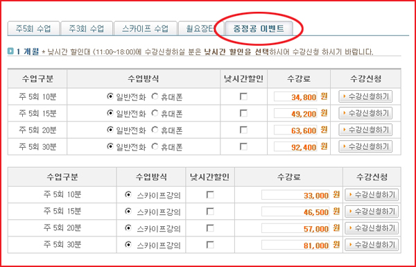 * 주 5회 1개월 수업 이벤트!