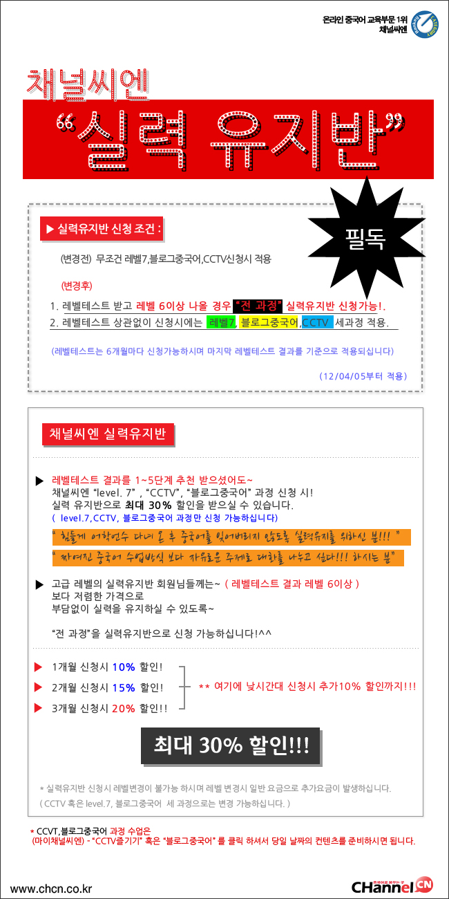 실력유지반은 레벨 유지시 항상 저렴한 가격으로 신청 가능하시며~