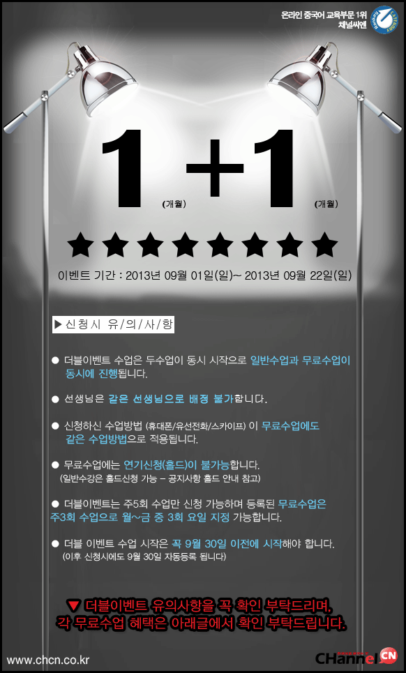 더블이벤트는 일반수강 주5회 수업에만 적용됩니다.