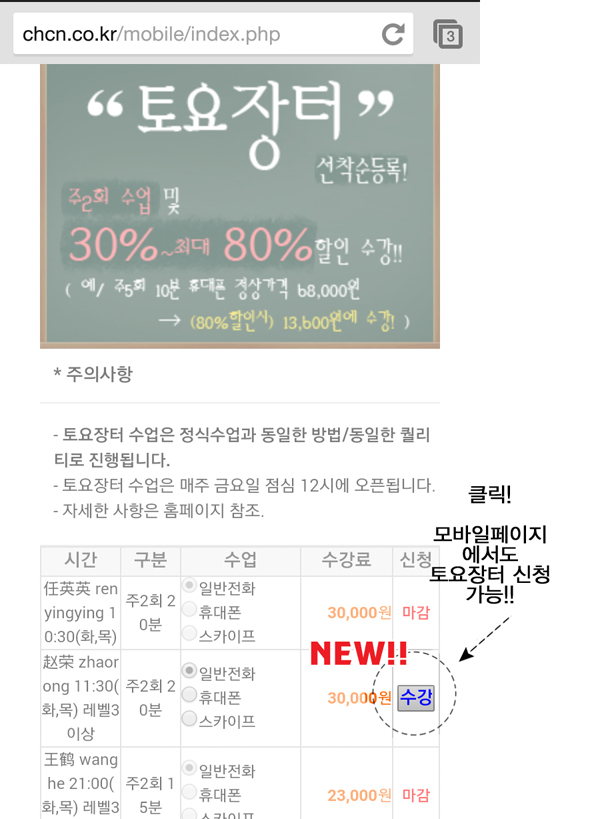 스마트폰 / 테블릿PC 에서도 수강신청이 가능해졌습니다~!!!