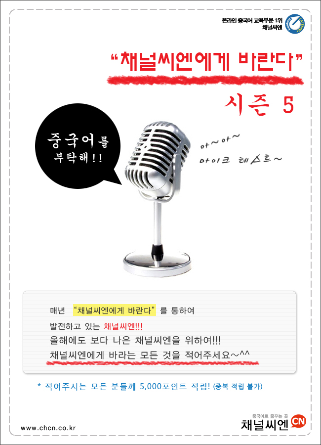 ad*** 많은 의결들 정말 감사드리구요, 더욱 더 좋은 중국어 학습환경을 만들기 위해 노력하겠습니다 ^0^ 加油~!!!!!!! (2015.07.02 11:48) 리플달기