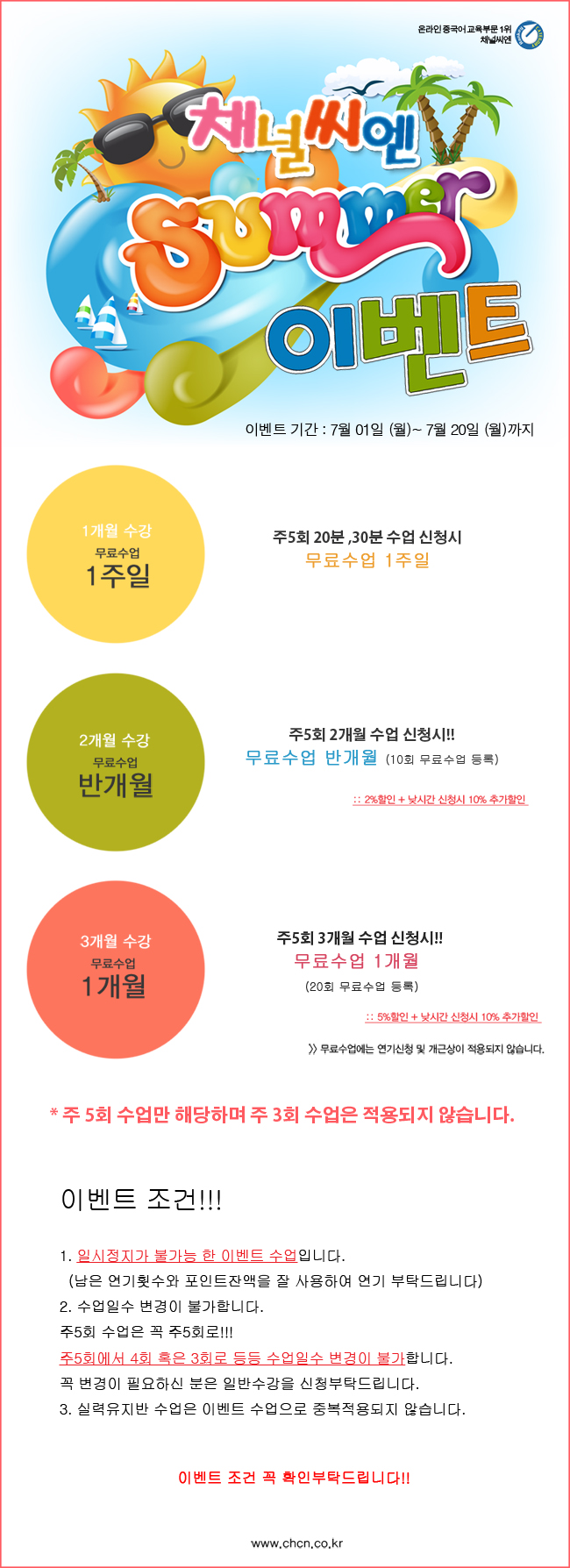 ad***   └ re) 네, 2개월, 3개월 수업은 10~30분 수업 모두 이벤트 적용이 됩니다 ^0^ (2015.07.01 10:19) 리플달기
