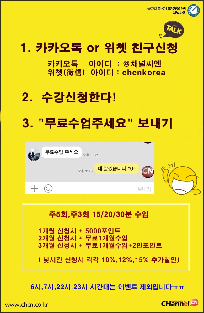 (카톡 아이디 검색이 되지않으신 분들은 휴대폰으로 ww.chcn.co.kr접속후