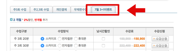 2개월 신청 시 반개월 무료수업 추가