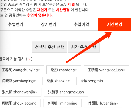 오늘부터 홈페이지에서 직접시간변경 할 수 있는